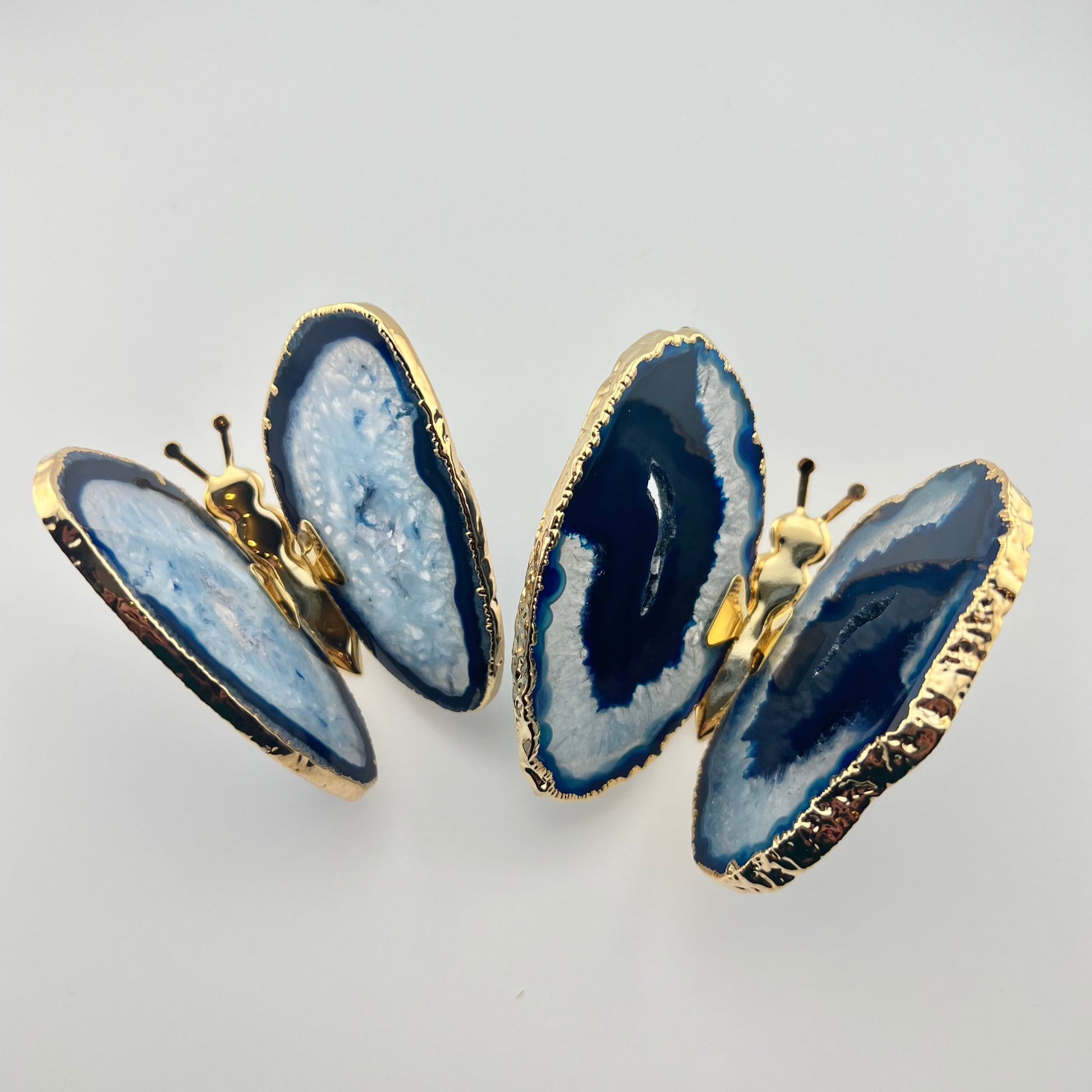 Natural Blue Agate Stone – Sourced from Brazil, each butterfly features unique patterns and hues, making it a one-of-a-kind piece. Known for its calming and protective properties, Blue Agate promotes harmony, clarity, and spiritual growth. In astrology, Blue Agate is associated with the signs of Gemini, Sagittarius and Pisces.